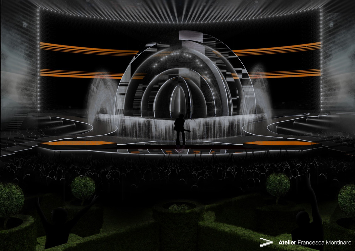 Green room ispred bine simboliše osećaj baroknih vrtova poput onih u Villa d’Este, Castel Gandolfo, Villa Lante ili drugim imanjima širom Italije, dok voda podseća ljude na fontane u parku. Francesca je želela osigurati da svaki umetnik ima platformu za izražavanje svog identiteta kroz pozornicu koju je dizajnirala.