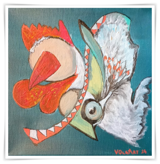 Olga Vujčić, koja svoja dela stvara pod imenom VolgArt, umetnica je interesantnog likovnog izraza koja prirodu doživljava drugačijim čulima, govori bojama, oseća oblicima i priča kistom. Na njenim slikama ništa nije onako kako treba da bude, ali uprkos tome odiše životom. Ona ima apsolutnu slobodu izraza kroz boje, forme i oblike. U njenim koloritima dominira plava boja gde nastaje iskra koja se proteže i spaja u jednu celinu. Dominira paun koji posmatra svojim raskošnim perjem, petlovi koji pozivaju na buđenje i ribe u dubini. Poetskim jezikom u tekstu piše da je VOlgArt umetnica jasnih formi, skrivenih simbola, glasnih boja koje se razlivaju emocijama i dodiruju očima, a njeno umetničko ime je ponovno rađanje, buđenje i novi život.