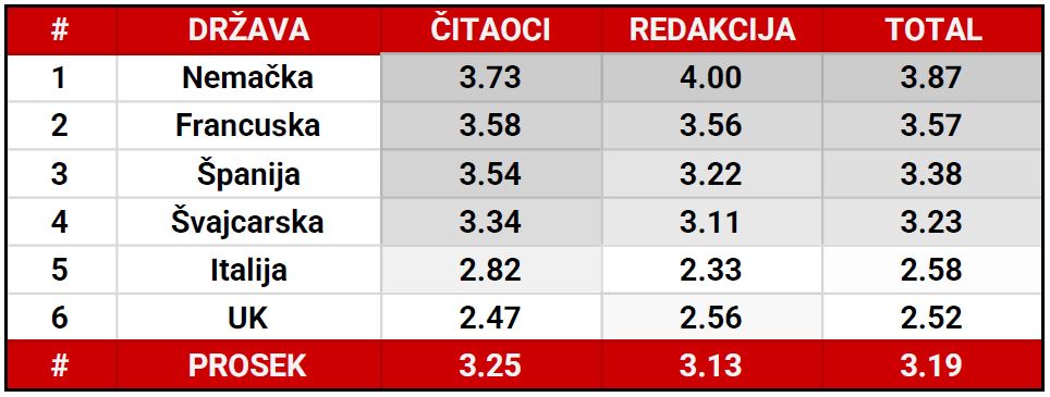 U nastavku pogledajte izdvojenu rang-listu naših čitalaca sa raspodelom svih njihovih ocena.
